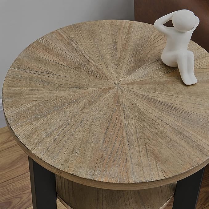 • Perfect Fusion Side Table: Combine form and function with this JESONVID Round Side Table. The solid wood round top offers plenty of space while the mid shelf allows you to store small objects, books, and magazines. Adding this coveted End Table to your living room will offer a sophisticated place to show your exotic decor items, vases, showpieces and valuable collectibles.
