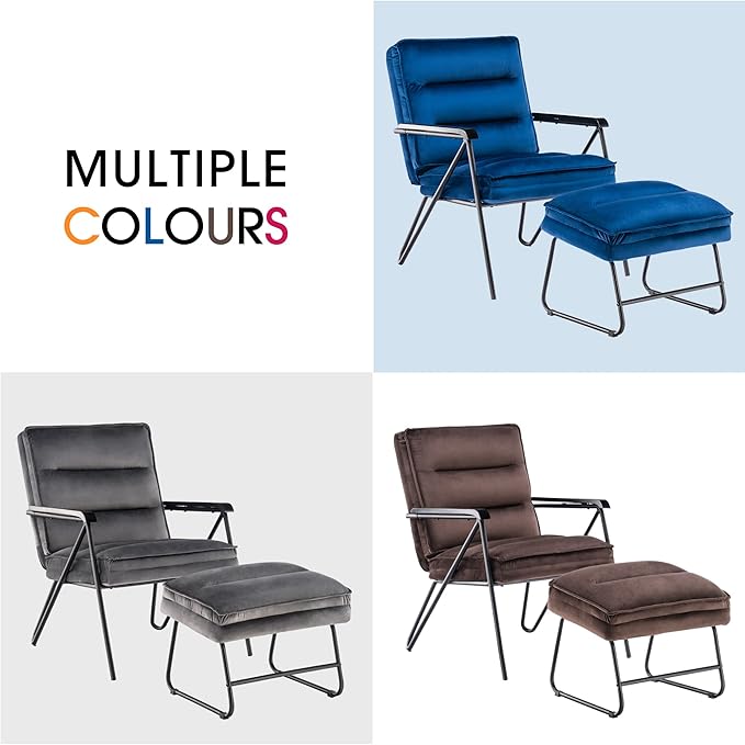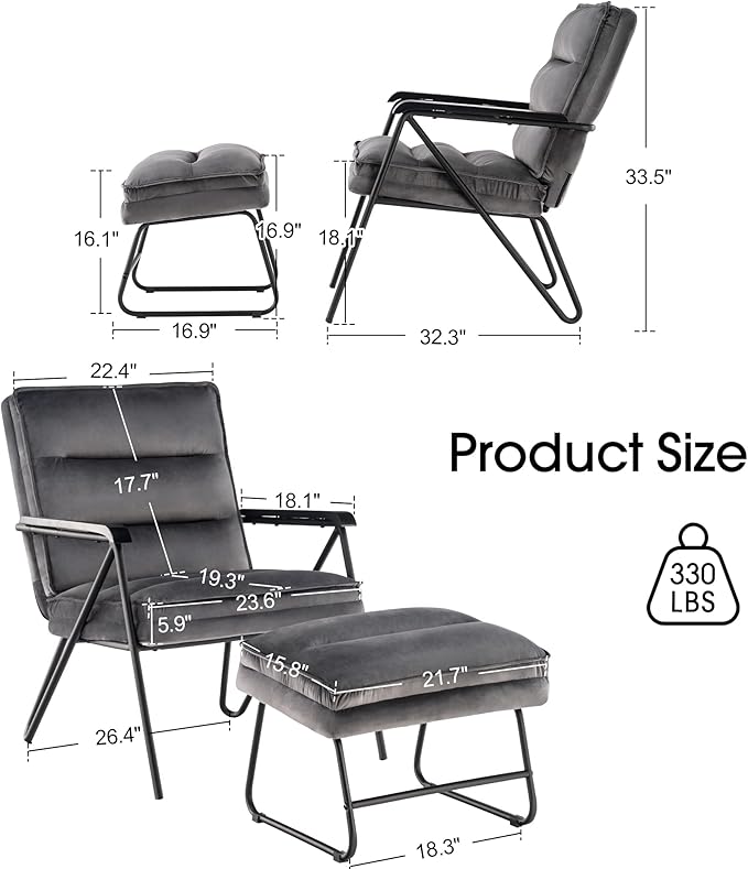 MCombo Modern Accent Chair, Velvet Club Chair, Upholstered Armchair for Small Space, Living Room & Office Reception, Fabric 4747 4750 (Chair with Ottoman, Dark Grey)