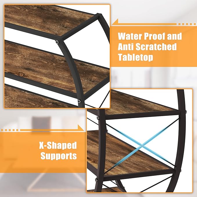 • Unique Design-- This 4-tier industrial console table is designed with a demilune shape, that perfectly fits for a tighter space yet it still provides an extra surface for decor. It's surprisingly stylish and keeps your things looking organized. This table's industrial design is achieved via black metal frame and vintage style countertop. The elegant appearance can be well matched with rustic, industrial or modern decoration.