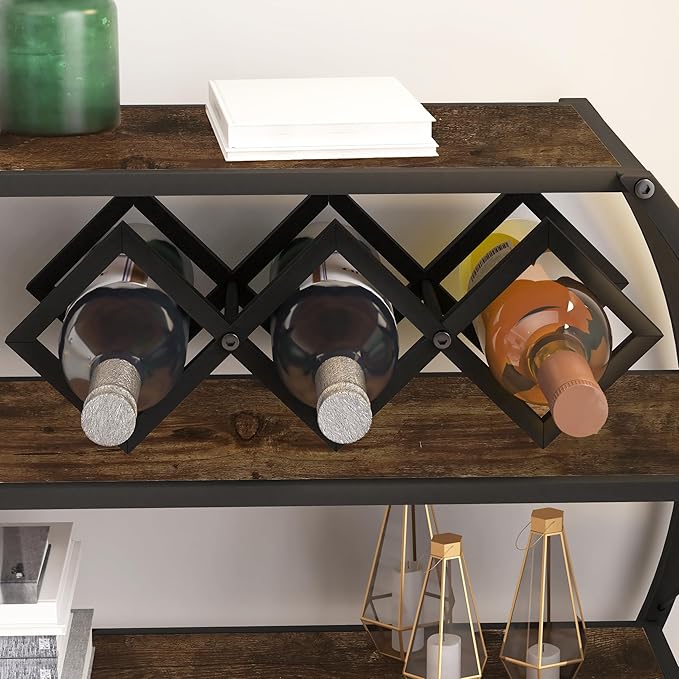 • Large Storage-- With 4 tier of wood shelving and 1 wine rack on the tabletop, this demilune Christmas console table provides ample storage space. You can put books, magazines, remote controls or plants, as a sofa table. Also you can uses it as an extra spot for additional plating and wines.