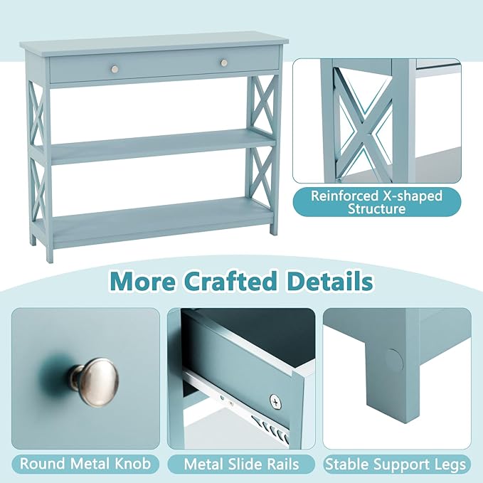 • [Sturdy & Durable Structure]: Made of solid MDF with odorless painting finish, this 3-tier hallway table stands the test of time and comes with strong loading capacity up to 209 lbs in total. And the X-shape structure on both sides provides extra strong stability to prevent wobble.