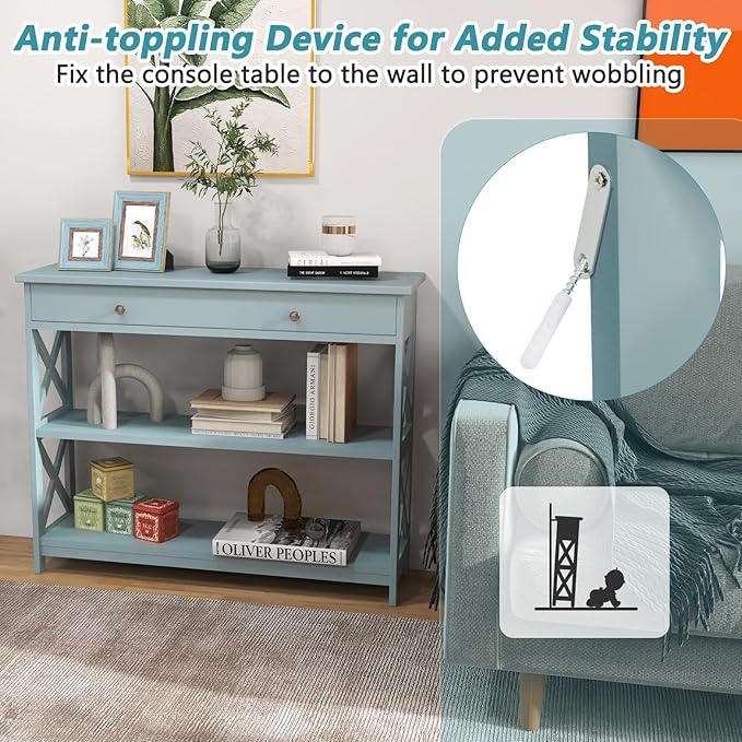 • [Easy-to-Fit Modern Decoration]: Designed with simple yet modern appearance, this wood console table will become a captivating addition to your whole home décor. And this sofa table is equipped with the toppling preventing device which protects kids from accidental injury.