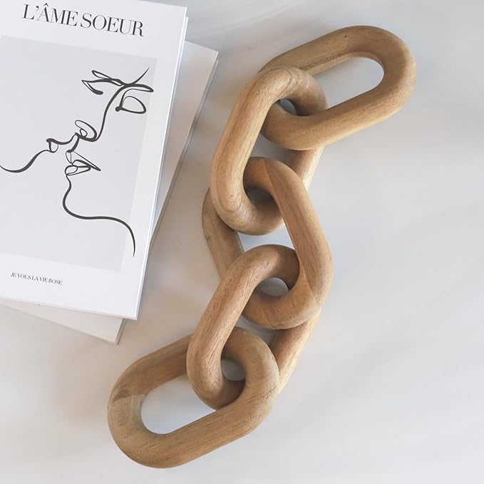 • Minimalist Wood Link Chain Decor: Instantly add style with these coffee table decor links and bookshelf decorative object; not for wall hanging and not recommended for painting; a modern conversation starter