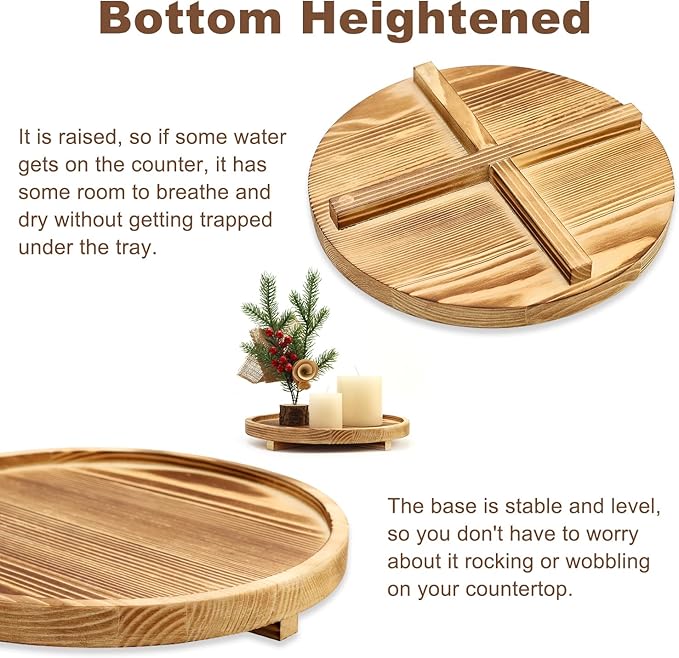 • MULTIFUNTIONAL TRAY: Can be used as kitchen tray, bathroom tray, sink tray, toilet tray. As the exterior core tray for home decor, these beautiful round wooden trays are undoubtedly stylish and perfect. Whether placed on a vanity, shelf, or dining table, this tray adds both function and exquisite to your home.