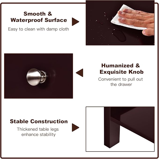 • 『Sturdy Frame & Durable Material』The entire bedside table is made of high-quality boards, which ensures strong stability and durability for long lasting use. The tabletop can support weights up to 66 lbs while the drawer and shelf can hold up to 11 lbs.