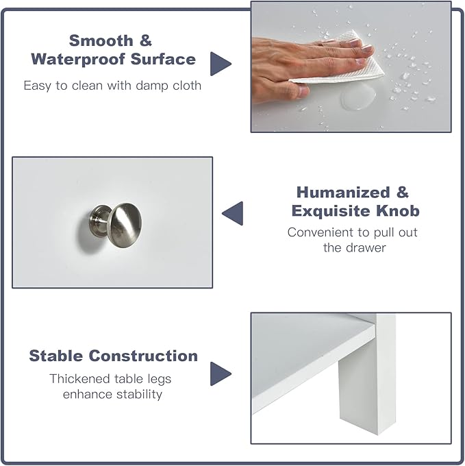 • 『Versatile Use & Handy Details』Depending on your needs, you can use this table as a nightstand in the bedroom, a sofa table in the living room or a display cabinet in the hallway. In addition, the drawer is easy to pull out with the tiny and practical knob.