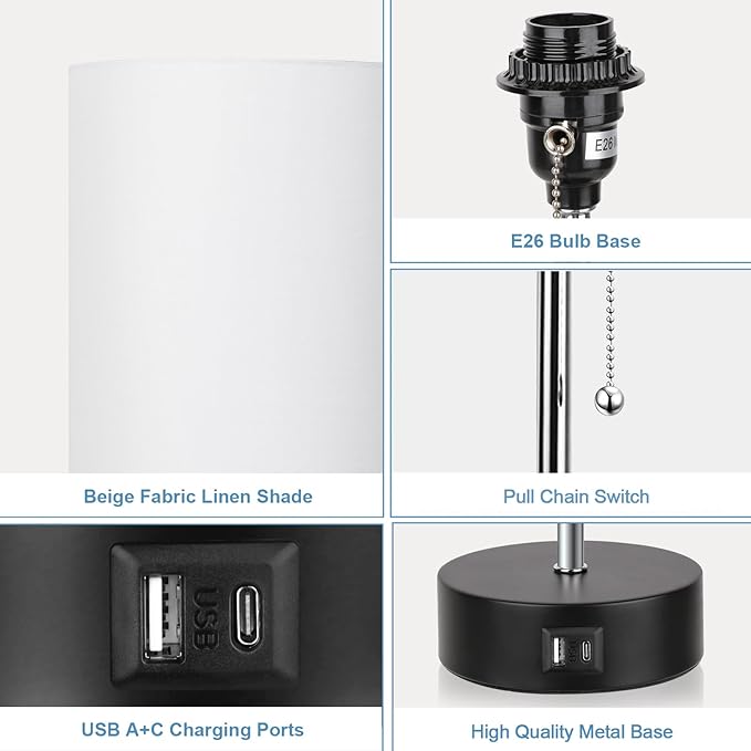 • 【Minimalist Design for Home】 The USB table lamp with the minimalist design, makes it be a perfect addition to your home.The fabric shade and black metal base is perfect to decorate anywhere at your house. It's a great choice to take this night stand lamp as a gift for your friends, family. A perfect bed side lamp for living room, bedroom, study room, kids room, den, nursery.