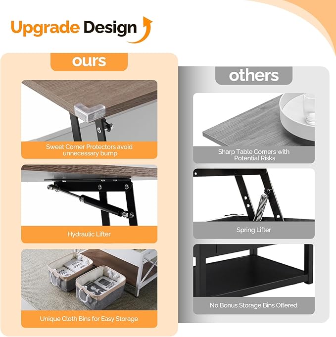 VINGLI 36" Lift Top Coffee Table with Free Cloth Storage Bins, White Walnut Framhouse Coffee Tables for Living Room, Small Modern Coffee Table for Small Space in Minimalistic Style, Dark Walnut