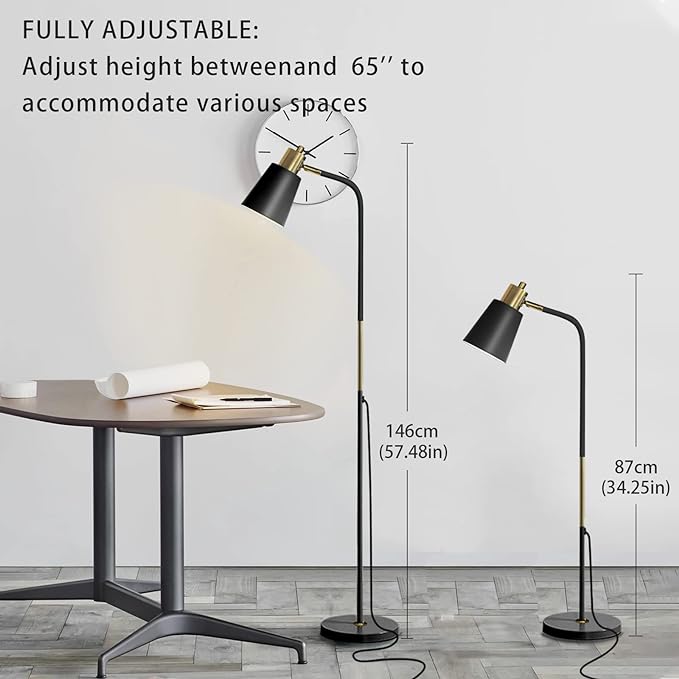 • ADJUSTABLE FLOOR LAMP: Adjust height between 34.25'' and 57.48'' to accommodate various spaces. Create custom lighting moods by swiveling the lamp head 180° for uplight or downlight. Concentrate the light downward for reading or crafts such as sewing and knitting. This floor standing lamp is sure to add a vintage vibe to your space, no matter where you set it.