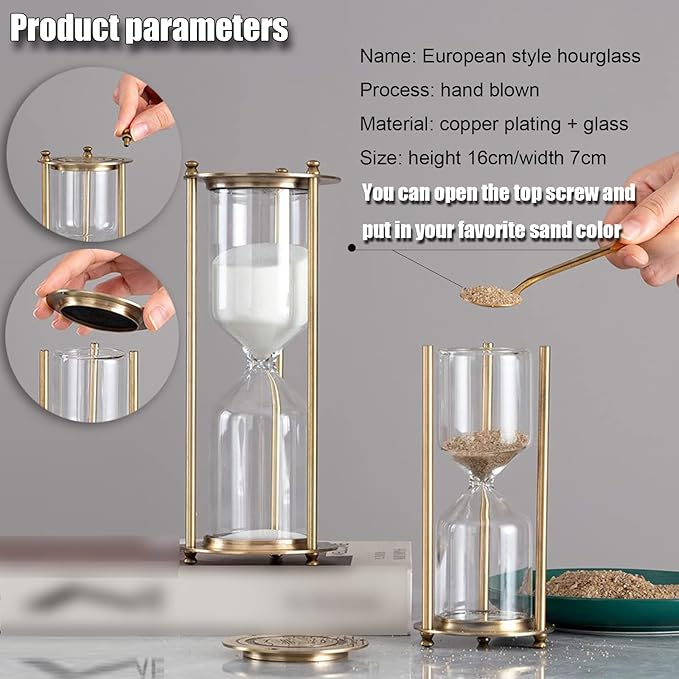 • [Excellent quality] The hourglass timer is made of high-quality metal + acrylic plexiglass, with classic embossed craftsmanship, the texture is natural and lifelike, retro and advanced, the classic hourglass timer will bring an elegant feeling to your office and home, it will definitely be Let your guests be amazed.