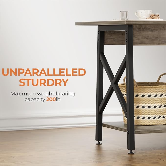 GreenForest End Table 24 inch for Living Room, Large Square Side Tables with X-Frame, Tall Industrial Bedside Nightstand with 2-Tier Storage, Gray Wash