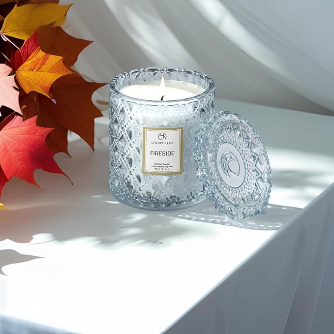 Chloefu LAN Smokey Fireside Scented Candle Gifts for Men Cashmeran Leather Candles for Home Scented, 55 Hours Long Burning, 8.1 Ounce Premium Soy Wax