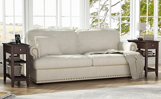 • 【End Table with Charging Station】With this narrow side table achieving charging freedom, this end tables living room includes 2 standard outlets and 2 USB ports can easily charge your desk lamp, cell phone, tablet PC or electrical appliances needs, different plugs that can be used together will save your time, sufficient 6.5 ft cord length for more placement options