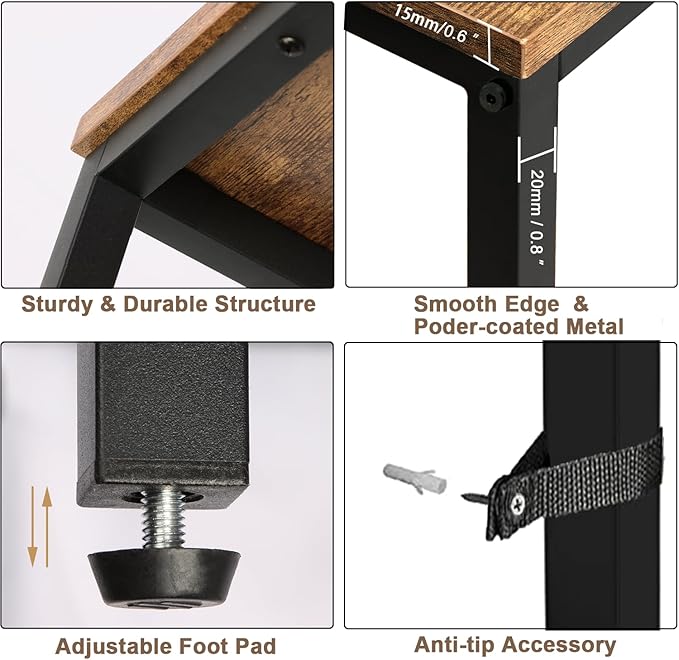 • Worried about wobbles? Made of particle board and metal; adjustable feet on each leg make the table sturdy to use, allowing slightly uneven floors to be a pain of the past