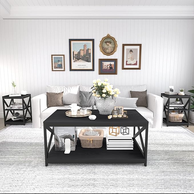 • 【Value for Industrial Look】Our coffee table and end table sets feature a sleek black wood finish with a sturdy X-frame design. The textured, Wooden tabletops add a touch of sophistication—blending farmhouse minimalism with rustic charm. Crafted with quality in mind, these pieces elevate any space without sacrificing durability or style.