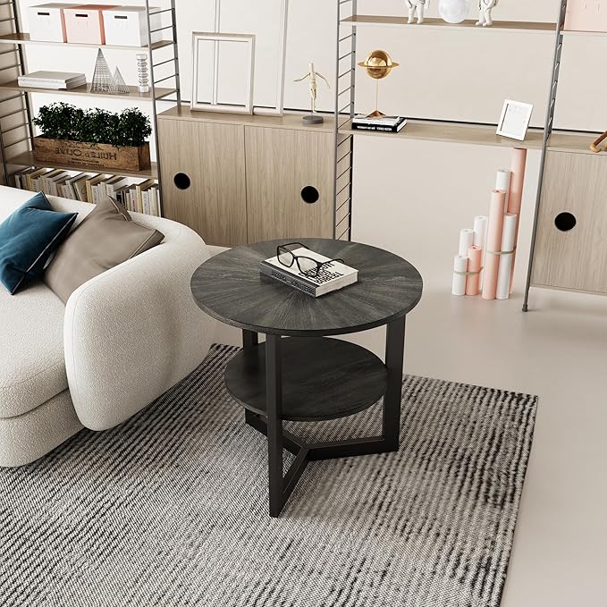 • Versatile Use: Ideal for any room in your home, this large round end table with two open storage shelves is a perfect addition to living rooms, bedrooms, reading nooks, offices, or reception areas. Lightweight and portable, it's great for leisure or work. Use it as a sofa side table, bedside table, snack table, laptop desk, lamp stand, or shelf. With its versatile functionality, this round end table allows you to create a thoughtful and chic narrative in your home design.