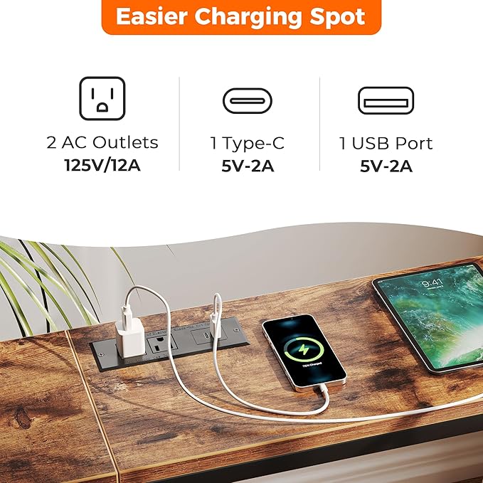 • [No Low Battery Warnings]: Imagine lounging on your sofa and brushing your phones to relax after a busy week. Don’t let low battery disappoint you. Let this sofa table narrow long with 2 AC outlets, 1 USB port and 1 Type-C Port provide close-at-hand power