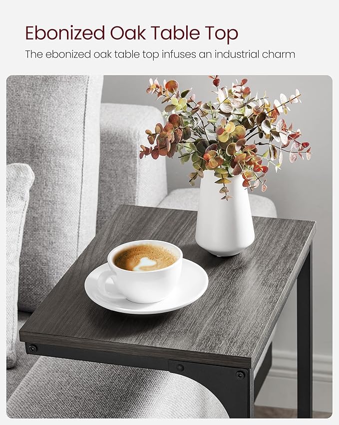 VASAGLE C-Shaped End Table, Side Table for Sofa, Couch Table with Metal Frame, Small TV Tray Table for Living Room, Bedroom, Ebonized Oak Finish and Black