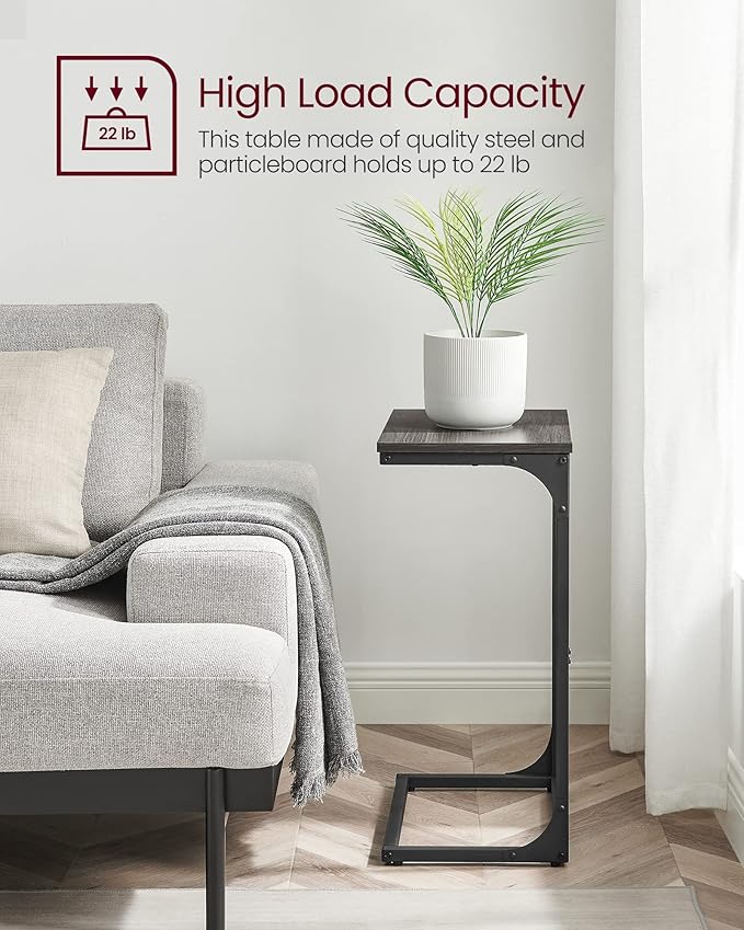 • [Perfect Sofa Sidekick] This C-shaped end table with a low 1.1” bottom frame easily slides under your sofa, and the 26.3” high table top fits over the arm of your sofa for easy access to items on it