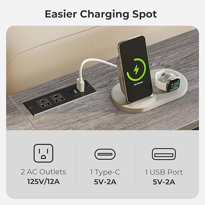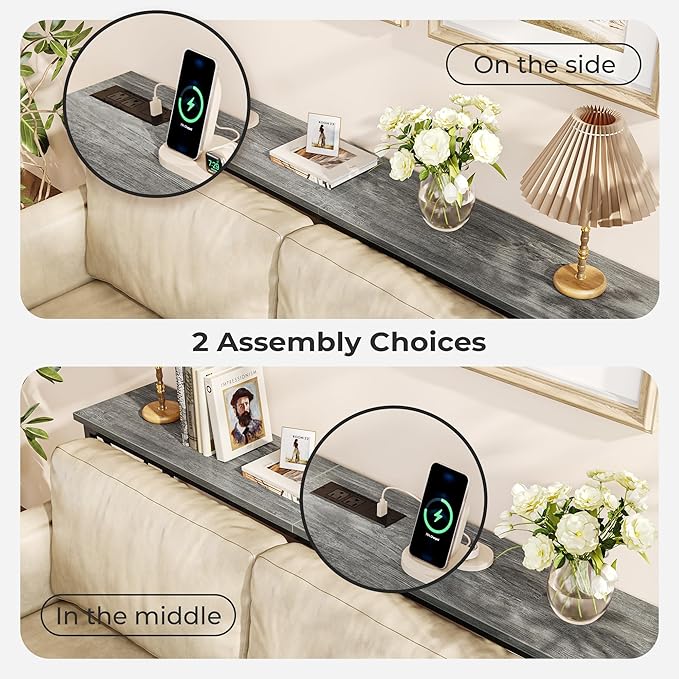 • 【Multiple Sofa back Charging Options】No more diving behind the sofa for an outlet! This sofa table features 2 AC outlets, 1 USB, and 1 USB-C port, perfect for charging your phone, lamp, speaker, or laptop right where you need it, whether behind your couch, in the hallway, or by the entry