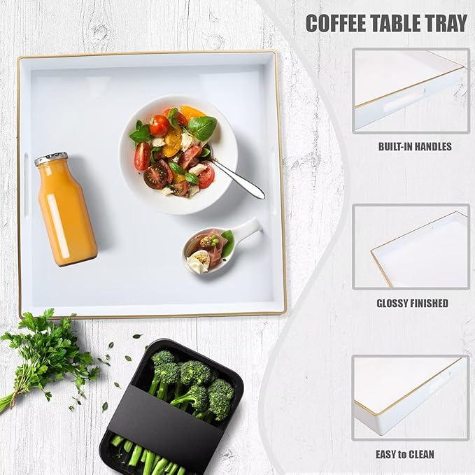 • Unique: Beautiful decorating trays with a glossy finish, giving them unique look appeal that adds to the home's charm. The organizer tray may also be used as a storage bin for small items like keys or TV remotes