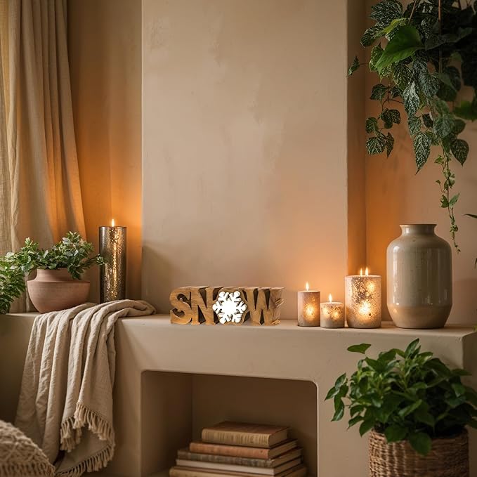 Decozen Living Room Decor: Handcrafted Snow Sign Letters Centerpiece - Bedroom, Indoor Coffee Table, House, Dining Room, Farmhouse & Kitchen Decor, Housewarming Gifts and Accessories - Solid Wood