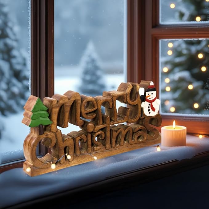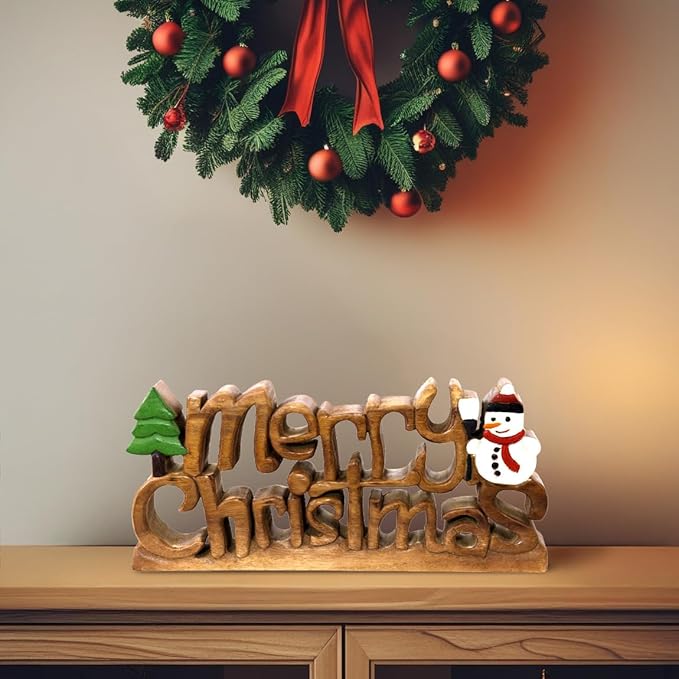 • Holiday Decor: The rustic wooden sign decor that spell out the word 'Merry Christmas' will let friends, love ones and family feel the essence of winter season. You will love the meticulous attention to detail we have put into this hand carved statue. Each piece is carefully handcrafted and hand polished that adds rustic charm to your home. Blend seamlessly with any modern, farmhouse, country, shabby chic or vintage style.
