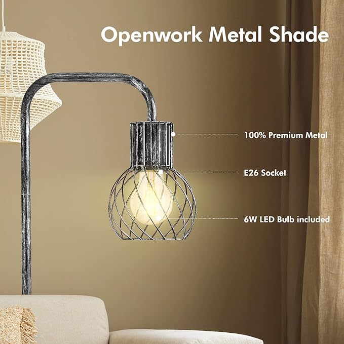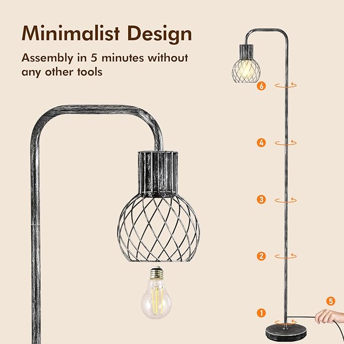• 💡Industrial Floor Lamp with E26 Base Socket - 6W LED bulb included! You can customize this stylish floor lamp with different shapes of any E26 base light bulbs to create your own decoration. This floor lamp for living room gives off warm, soft 2700K warm white lighting and creates a comfortable ambiance for instant relaxation and reading.