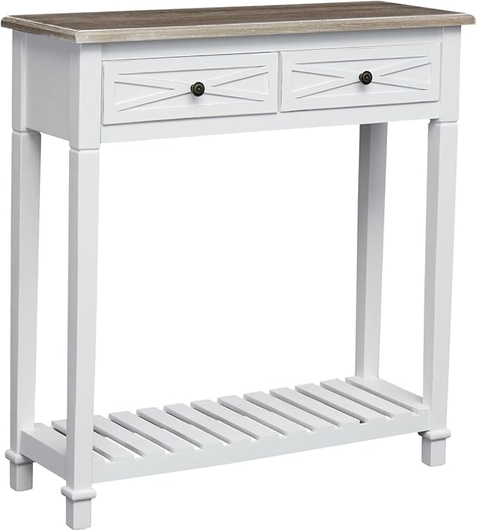 Kinfant Modern Console End Table with 2 Drawer and Storage Shelf for Entryway Living Room Hallway, White