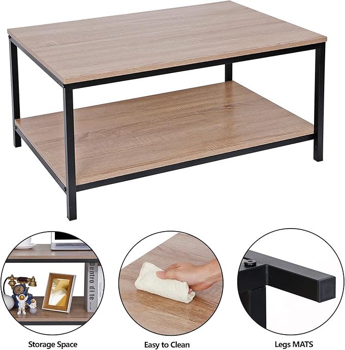 • 【Easy To Assemble】 --- All you need do is assemble the legs, a wonderful coffee table is completed in just a few minutes; instructions, screws, and tools are provided. It's easy to wipe clean the center table by soft damp cloth.This coffee table with two layer is equipped with 4 adjustable foot pads to keep the floor flat and prevent the floor from being scratched