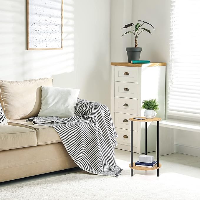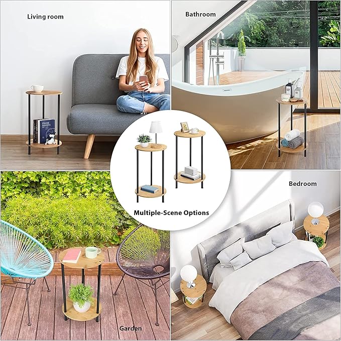 • Sturdy Structure: Our small side table is built with anti-rust, waterproof, sturdy metal and wood panels gives the round end table a high degree of stability. Each shelves can securely hold something that weighs to 30-40LBs.The adjustable anti-slip mat on each leg can help adjust the height and will protect your floor from scratches.