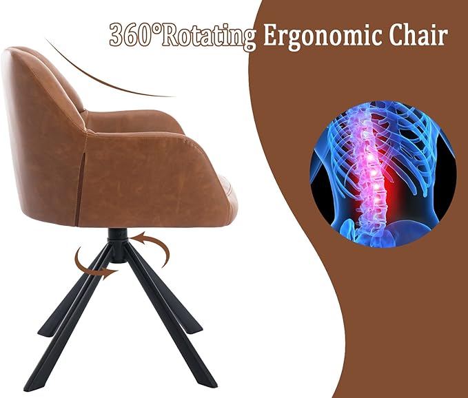 EALSON Comfy Leather Desk Chair Modern Computer Task Chair no Wheels Swivel Accent Chair with Mid Back Arm Chair for Living Room/Bedroom/Home Office, PU Brown