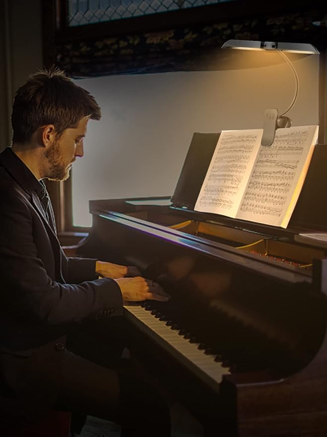 • 5 Brightness×3 Color Temperature - Vekkia music stand lights with 15 brightness modes. Whether you like warm or white light, bright or soft, our piano light can meet your satisfaction, which is bright enough for playing, reading, sewing & craft, or dim enough to not disturb the others. Customize your light pattern by choosing different color and different brightness.