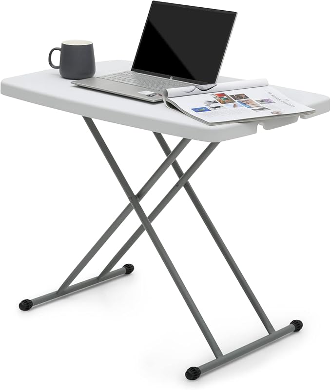 MoNiBloom TV Tray Folding Table 30" Height Adjustable, Portable Indoor/Outdoor Picnic Partiestable and Laptop Square White Small Table with X Legs
