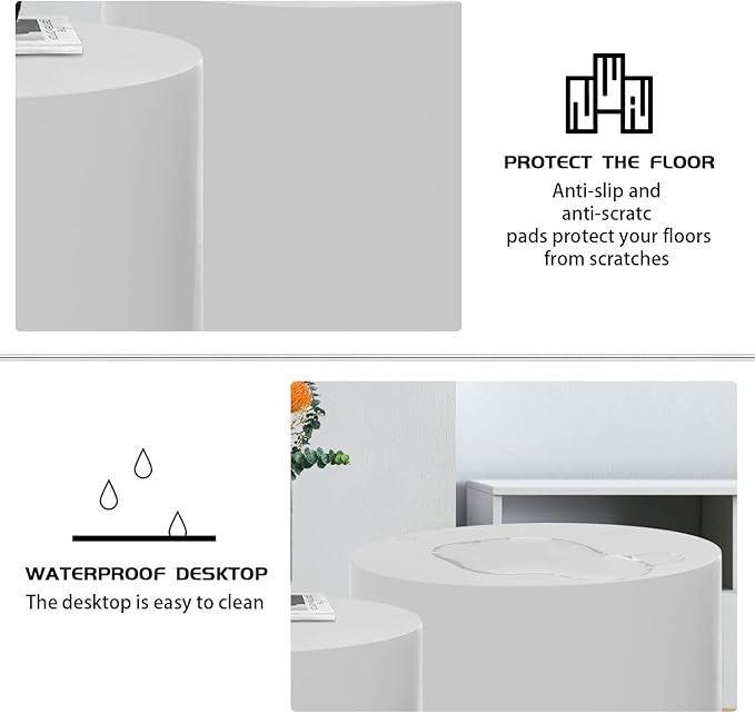 • ✨Multiple Purpose. Designed in modern style, our end tables is simple and elegant. The nesting table is perfect for your living room as a sofa end table or next to your favorite armchair as a round side table. Get your creativity and use it in bedroom or office as a bedside table, reading table, coffee table etc. The clean lines and matte finish will match with any interior design.