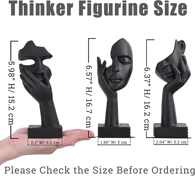 • Black and Gold Decor: Statue of abstract thinkers This combined thinker face sculpture is suitable for many places, such astv stand decor for living room, bedrooms, bookshelves, wall decor shelves, decorative books, offices, for home decoration. To play the role of art, it will be the ideal filling