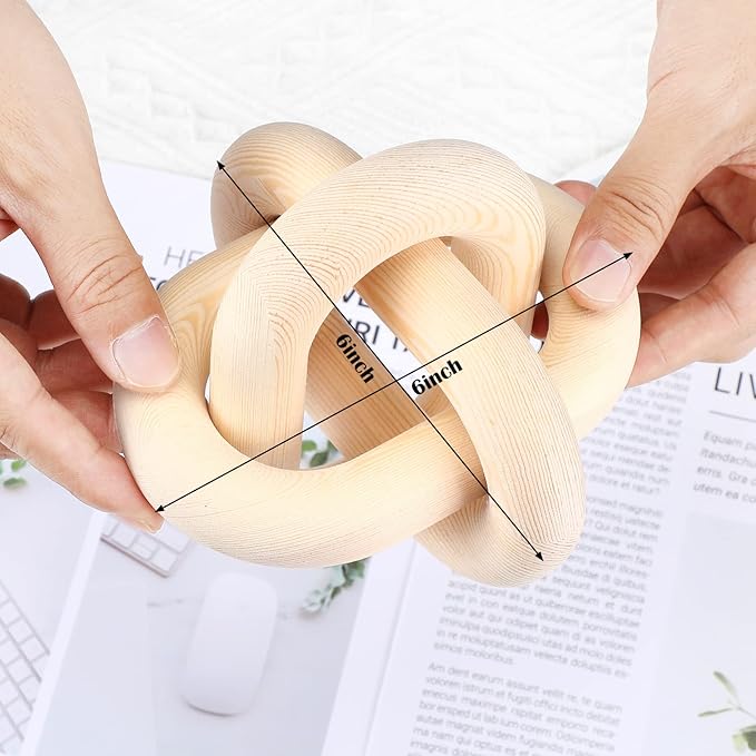 3 Link Wood Knot Decor - Hand Carved Coffee Table Decoration, Boho Chain Link Decor, Modern Shelf, Rustic Objects for Home Living Room Bedroom(Natural)