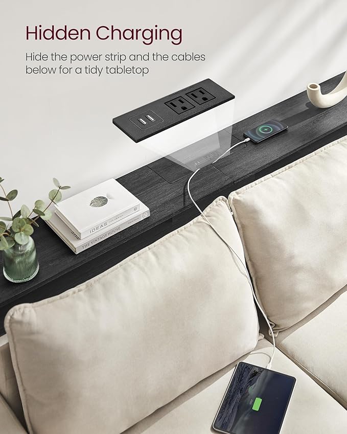 VASAGLE 70.9-Inch Console Table with Outlet and Shelves, Sofa Table with Charging Station, Behind Couch Table Skinny, Entryway Table for Hallway, Living Room, Charcoal Gray and Ink Black ULNT118B22