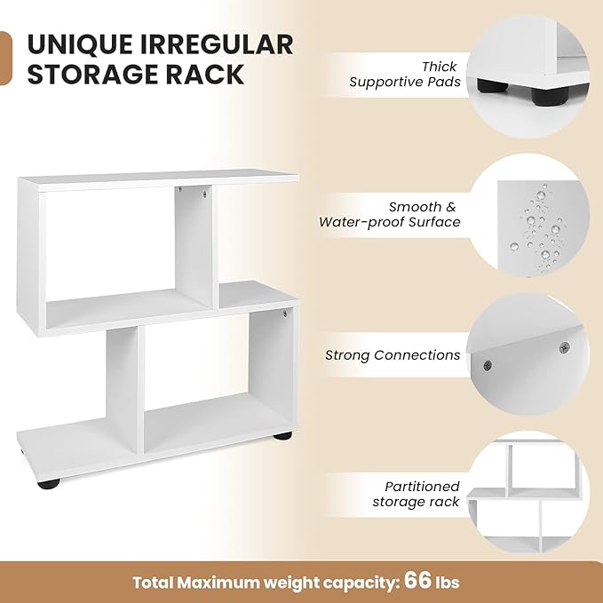 Giantex 3-Tier Geometric Bookshelf, 24’’ Tall Wood S-Shaped Display Shelves with Thick Foot Pads, Freestanding Open Shelves Nightstand, Floor Standing Display Shelf Bookcase