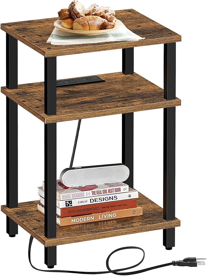 TUTOTAK End Table with Charging Station, Side Table with USB Ports and Outlets, Nightstand, 3-Tier Storage Shelf, Sofa Table for Small Space TB01BB042
