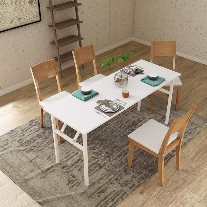 • HIGH QUALITY - This modern sturdy folding writing table frame is built with high-strength, thick tubing steel that is powder coated for a perfect finish. And the fold up desk top surface is 3/4 inch thick, high resistance on scratch & friction.Net weight about 38.5lbs, Gross weight about 41.9lbs.