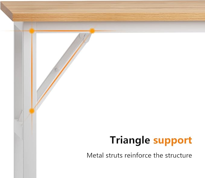 Need Home Office Desk - 62 Inches Large Computer Desk Sturdy Black Table Foldable Desk Gaming Computer Table No Assembly Required Teak&White AC5BW(157.5 * 60)