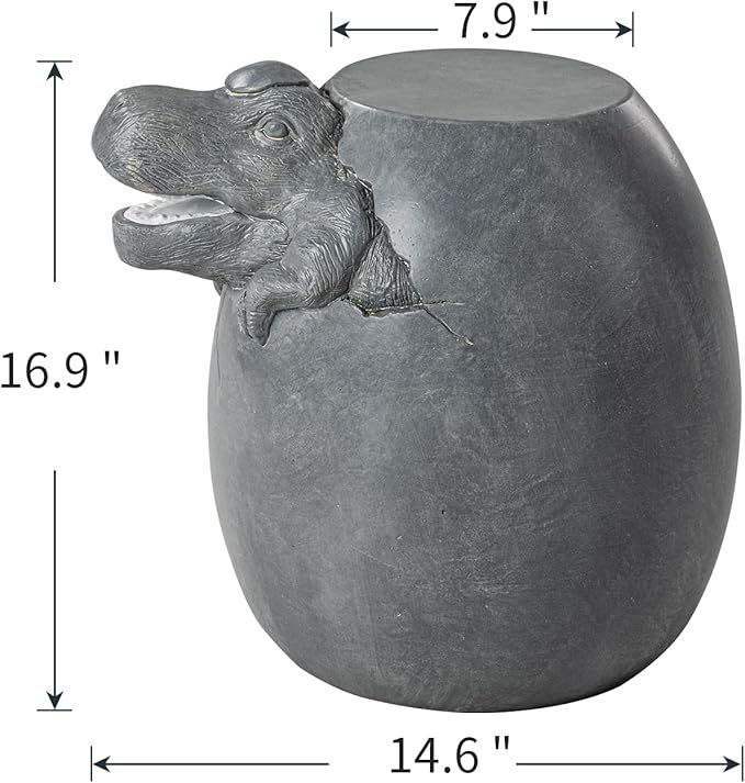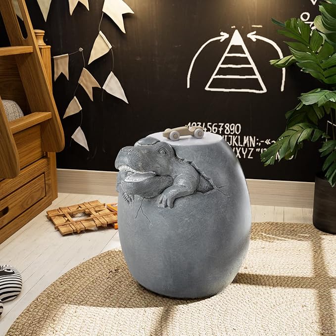SUNBURY Outdoor Side Table for Patio, Concrete Side Table, Grey Dinosaur Small Side Table End Table, Outdoor Accent Table Garden Stool