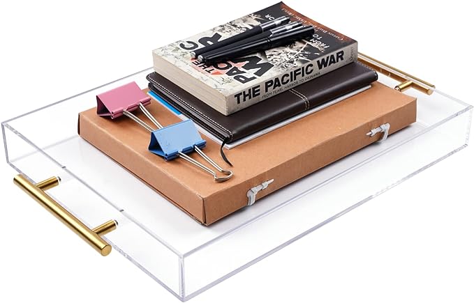 • Multi-function Usage: This clear tray size is 12x16x2 inches. We have small, medium, large different capacity can meet all your needs. Suitable for your home, bars, workplace use. Perfect for makeup table tray, nightstand tray, coffee, and tea snack serving tray, even use for bathroom decoration tray. Keep your home organized.
