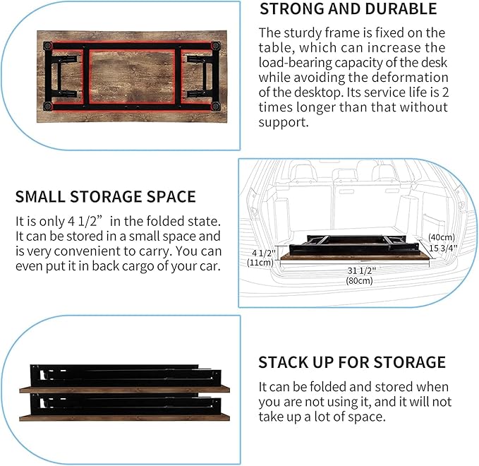 • The portable desk leg uses epoxy spray paint technique, lacquer face is not easy to fall off. It is durable, long lifetime up to 10 years.