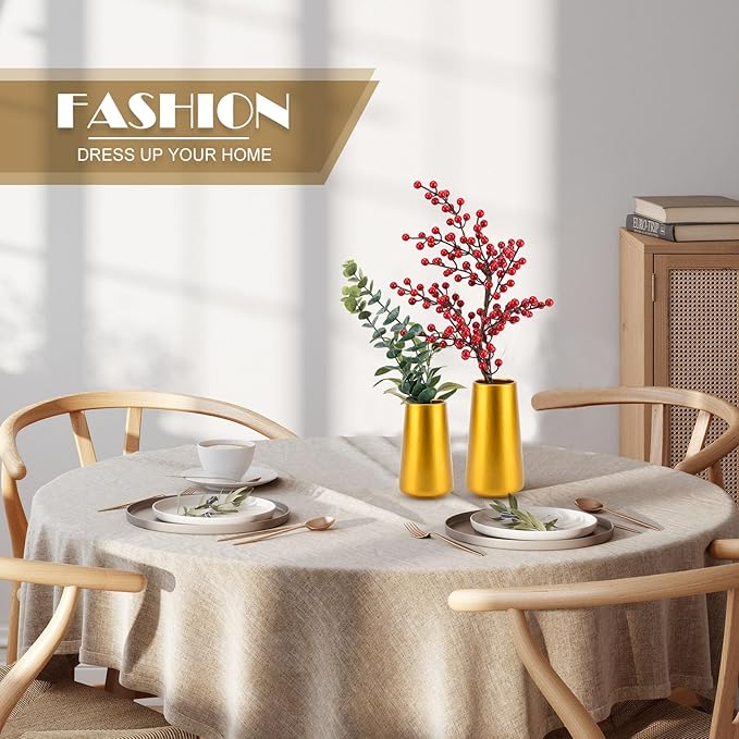 Gold Vase - 8" Gold Ceramic Flower vase for Home/Table/Accent Decor, Minimalist Modern Vases for Centerpieces, Room Decor, Living Room, Bedroom or Gift