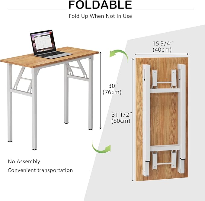 Need Small Desk 31 1/2" No Assembly Foldable Writing Table,Sturdy and Heavy Duty Folding Computer Desks for Small Space/Home Office/Dormitory AC5BW(80 * 40)