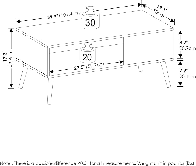 • WEIGHT CAPACITY: The tabletop of this coffee table/ side table supports up to 30 lbs and lower shelf holds 20 lbs; Total support 50 lbs