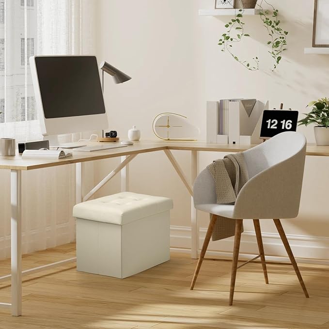 Storage Ottoman, Folding Foot Stool with Thicker Foam Padded Seat Small Leather Storage Ottoman Bench Foot Rest for Living Room Foldable Coffee Table 17x13x13in,Beige