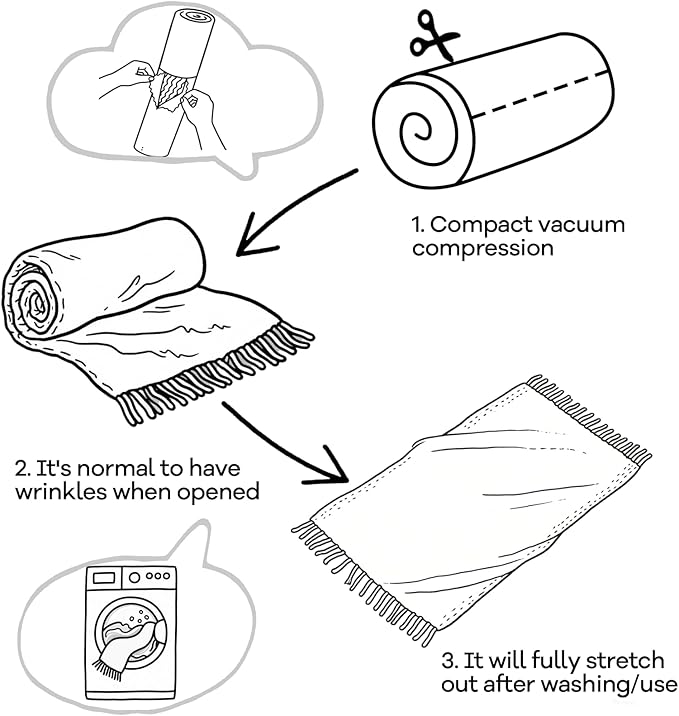 • 【EASY CARE】:Tassel blankets is vacuum packed, When you receive it, there may be some degree of indentation, which is a normal phenomenon,We suggest that you wash it before use, Separate washing with a laundry bag, gentle cycle,,as it will regain its fluffiness.